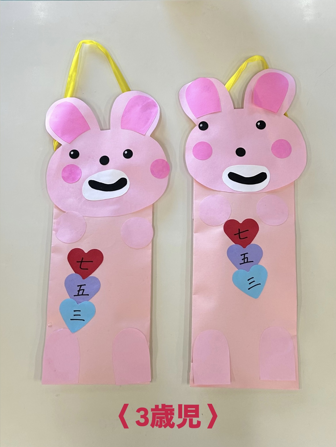 千歳飴を持ち帰る袋を製作しました♡「七五三」という行事の意味を先生から聞いて理解しながら進めていきました。