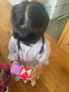サイコロは、立体だったので「どうやって作ったの?」と園長先生に聞いて折り方を学ぶ姿が見られました。