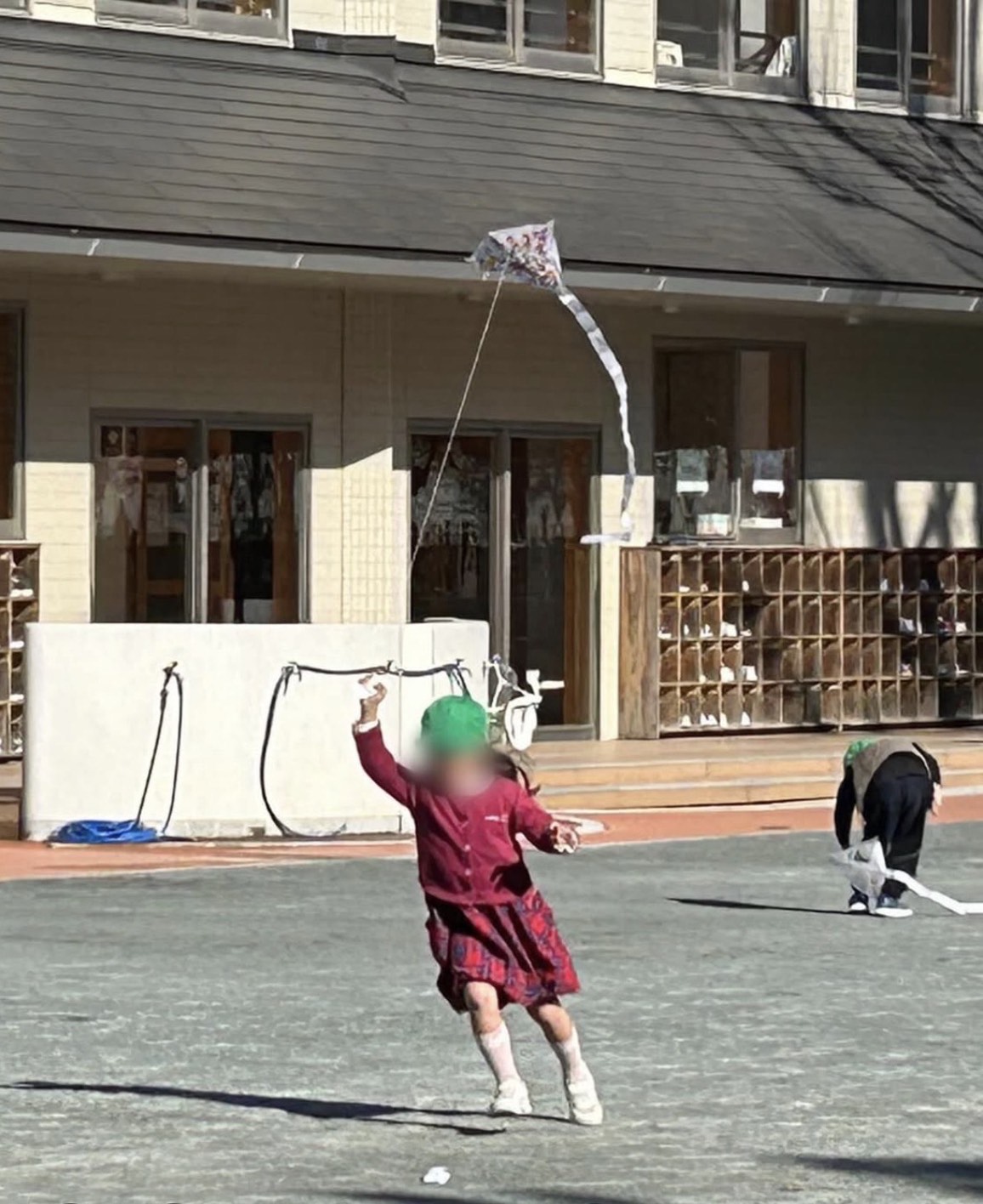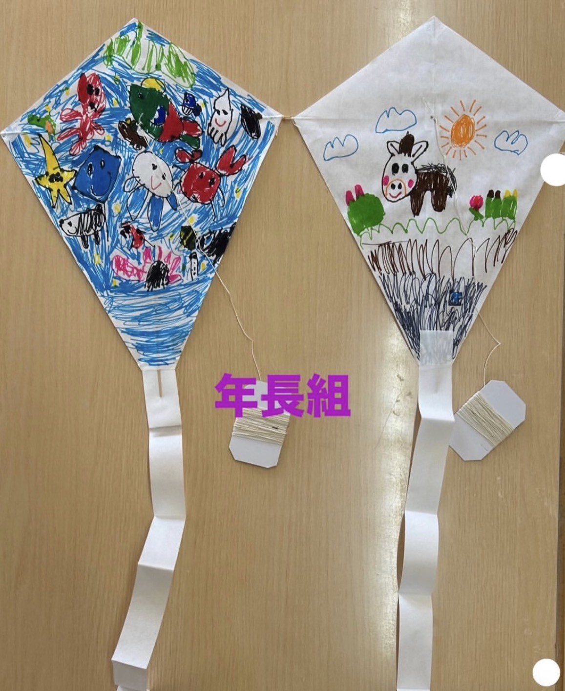 また、年長組は六郷地区の伝統である「とんび凧」を地域の方々から頂き、