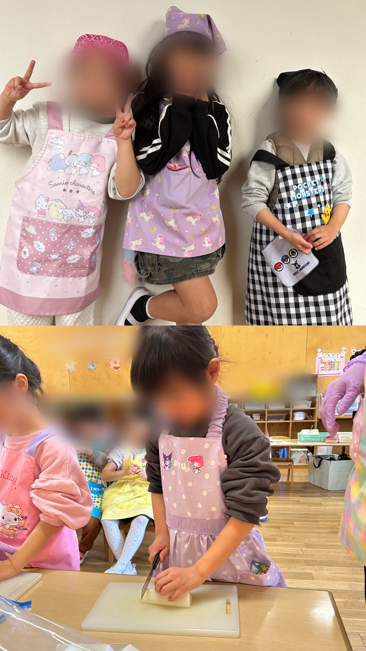 先生に補助をしてもらいながら、今までの指導を生かし、真剣な表情で切ることができました✨